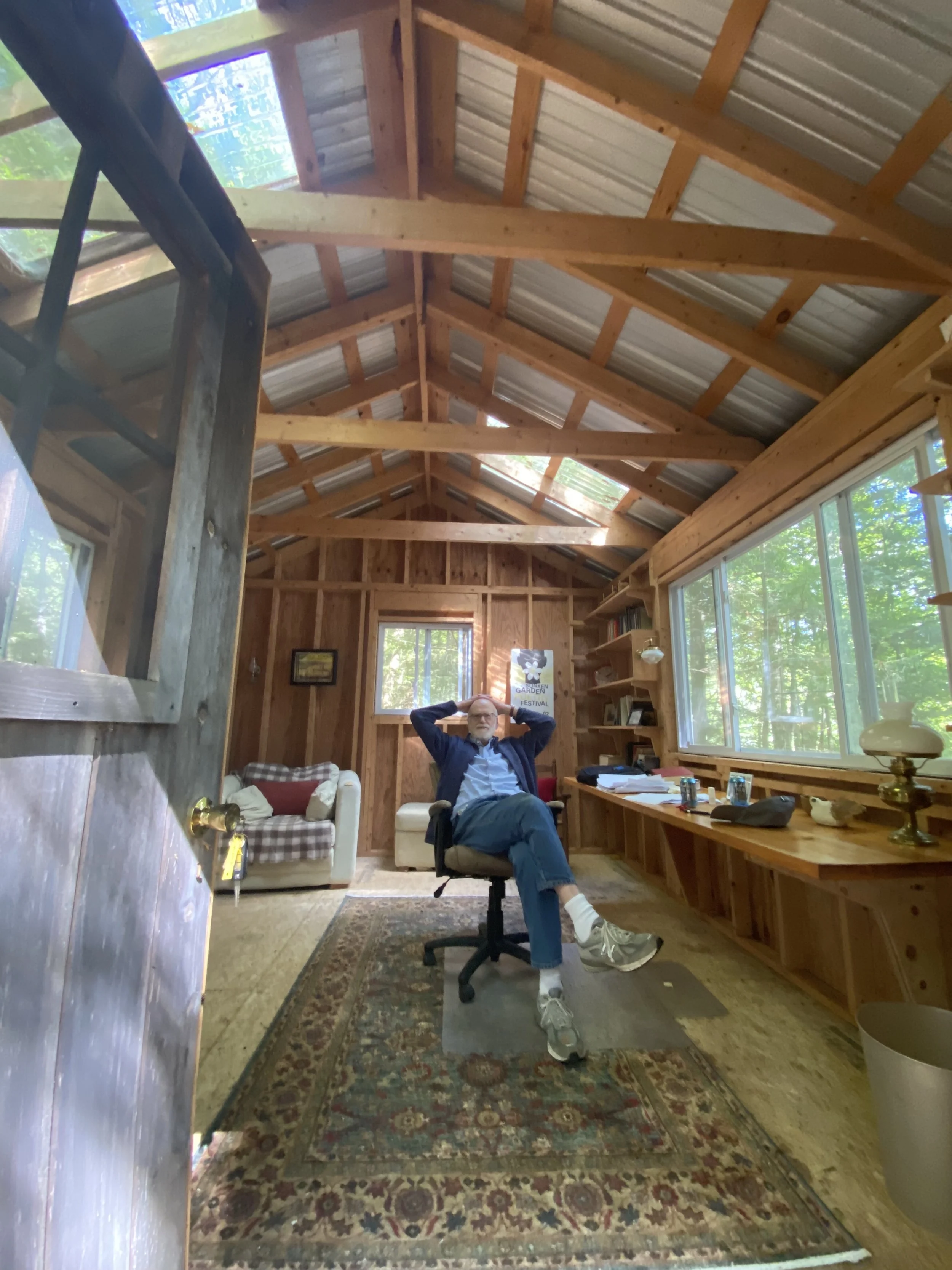McNair in his writing cabin on Drury Pond in Temple, Maine. (Photo by Joshua Bodwell)