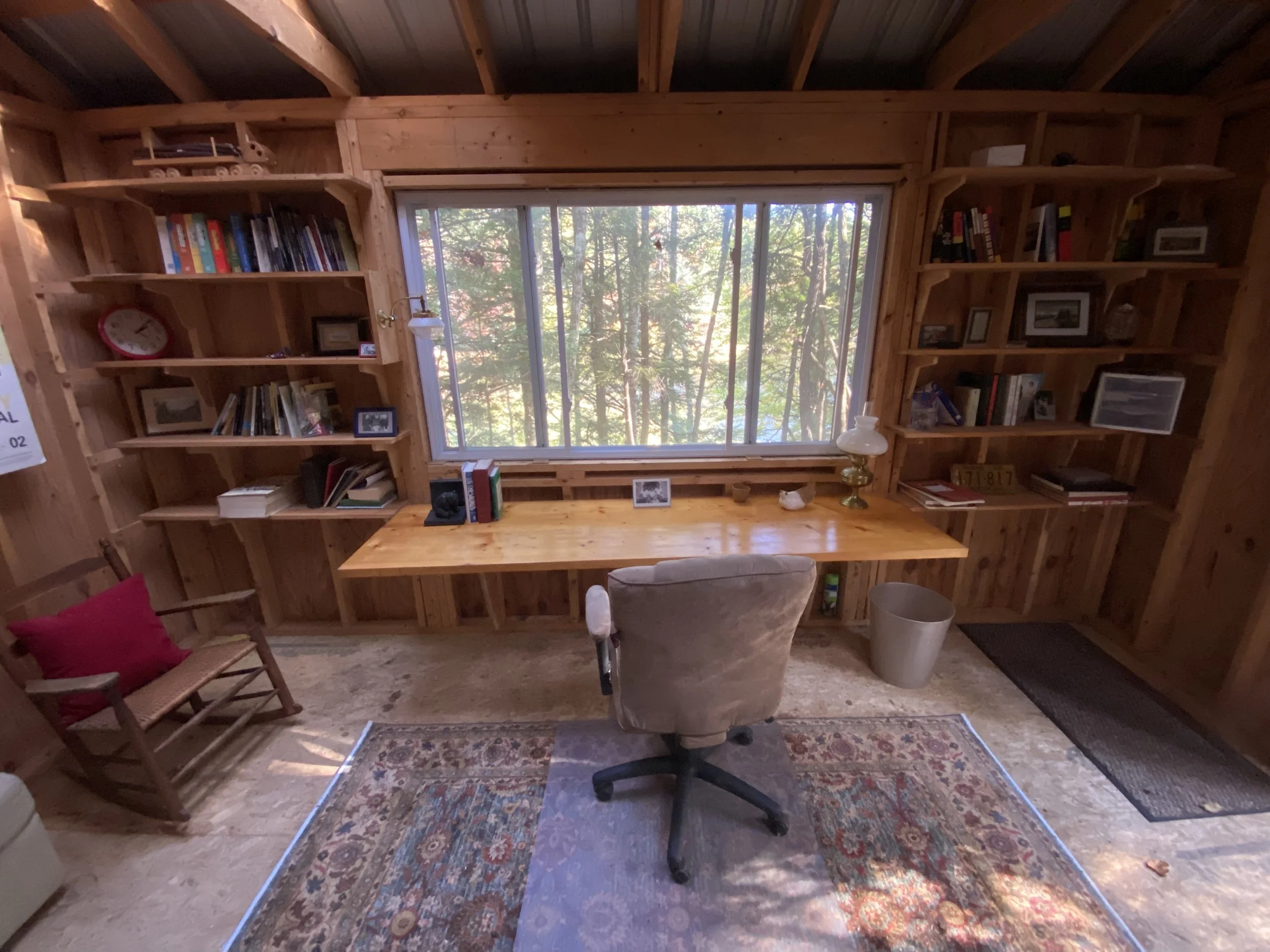 McNair’s writing cabin on Drury Pond in Temple, Maine. (Photo by Joshua Bodwell)